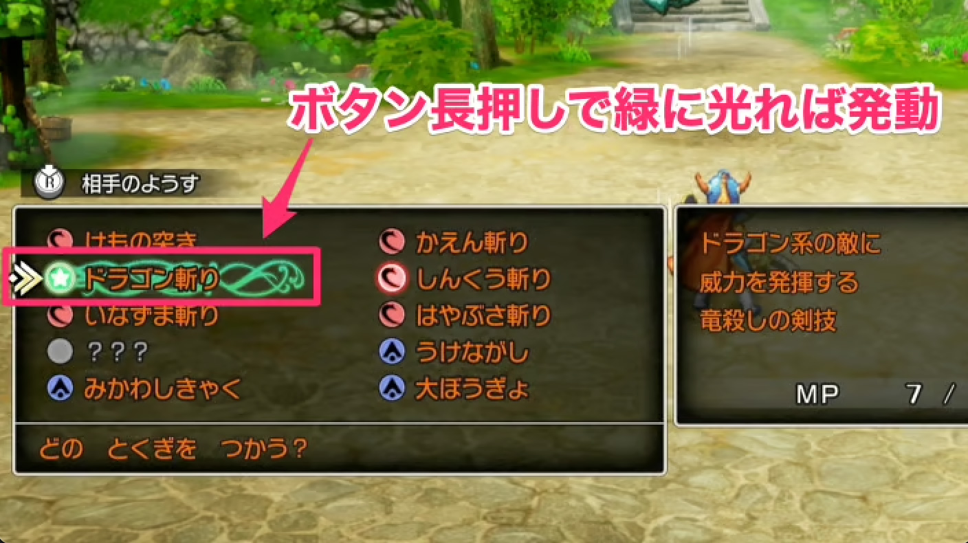 戦闘でもゲーム初心者までに配慮した技の効果まで説明してくれているのですが、超絶技はただのボタン長押しなもので、どの技が使えるか・どんな効果があるか説明が表示されません。